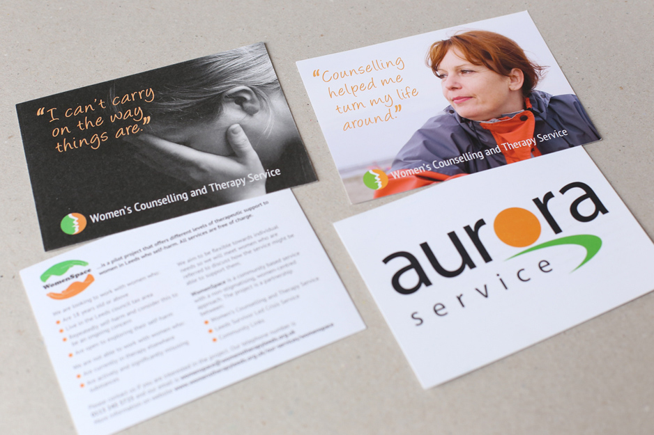 - Promotional postcards for women’s charity
